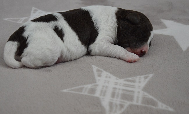 Idag är vår lilla Uno (T. Double or Nothing) en vecka gammal. Han har dubblat sin födelsevikt med råge och verkar må som en prins. Han trivs bäst på filten med stjärnor på av uppenbar anledning.